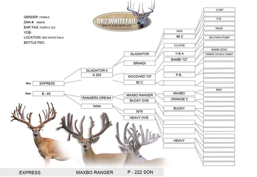 PURPLE 222 is Northern Whiskey's womb sister, she is also the dam to BR2 Lake effect who supported a 9x7 mainframe as a two year old!