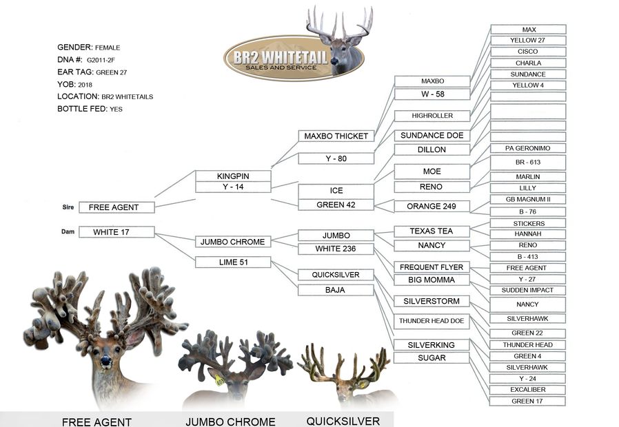 PINK 3 is a sweet heart! She is also the womb sister to AGENT 20 and AGENT 28, this girl simply does not miss and her offspring consistently brings top dollar. She has been a building block for BR2 Whitetails the past several years!